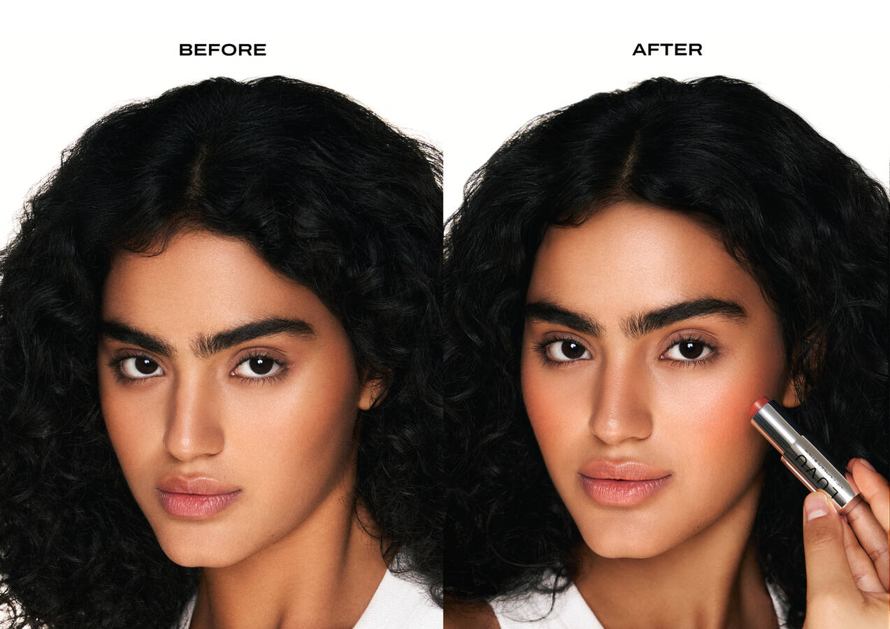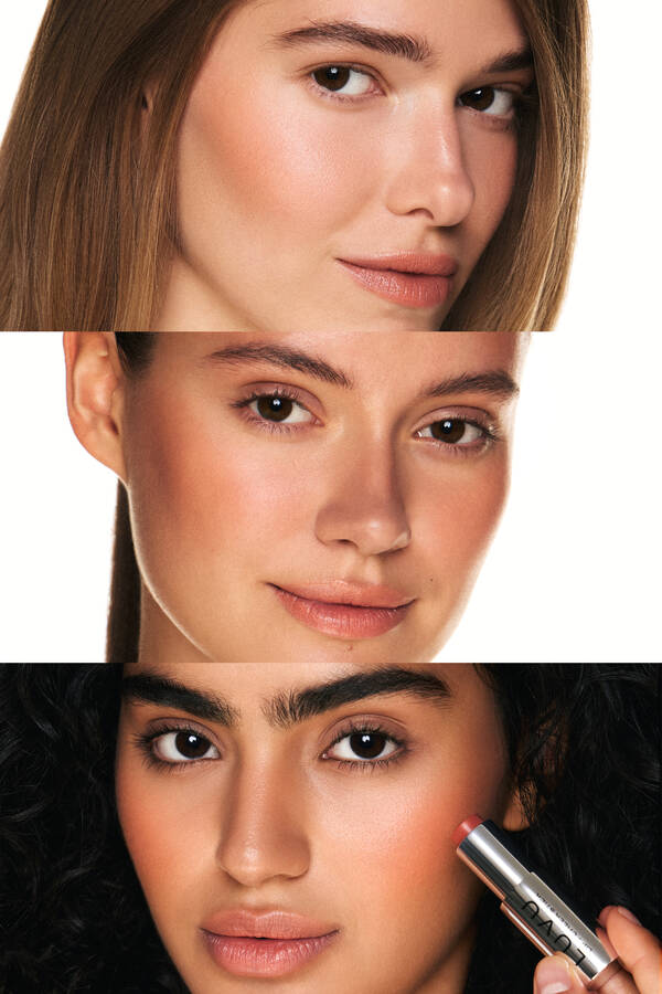 Нанесите небольшое количество продукта и растушуйте кисточкой или кончиками пальцев. Наслаивайте до желаемой интенсивности.